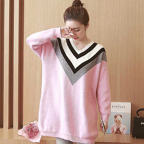 宽松中长款针织衫:宽松的大V领设计,可以有效的减缓视觉冲击,展现出迷人的瓜子脸。落肩袖的设计能有效的遮住蝴蝶臂,还你一个纤细的手臂和美背。