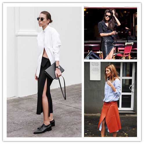 若是想要性感又不愿过分裸露的话,开叉裙便是最好的选择,搭配基础款衬衫,穿衣技巧,柔美与帅气同时加身,展露出若隐若现的美好性感,一秒秀出无敌好身材!