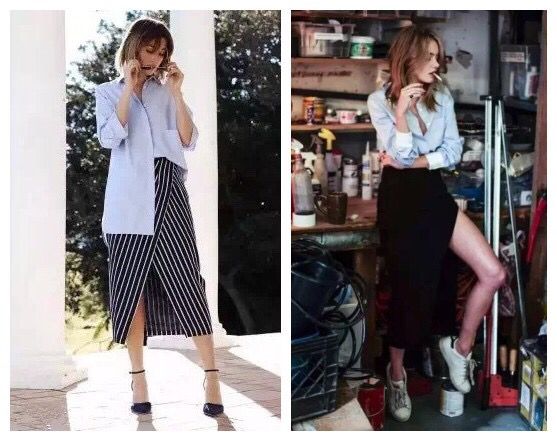 其实严格意义上来讲,衬衫和裙组CP已经不是什么特别新鲜的事儿了,有心的你也许会发现,时尚达人常常会穿着一身简单的衬衫+短裙出没在各大时尚街头;这么看是不是也很顺眼呢?