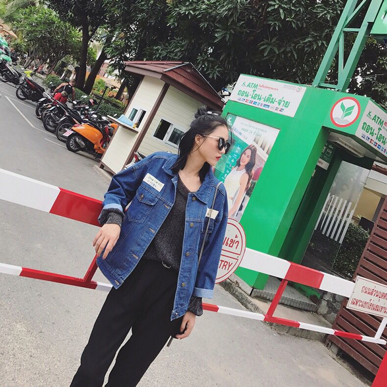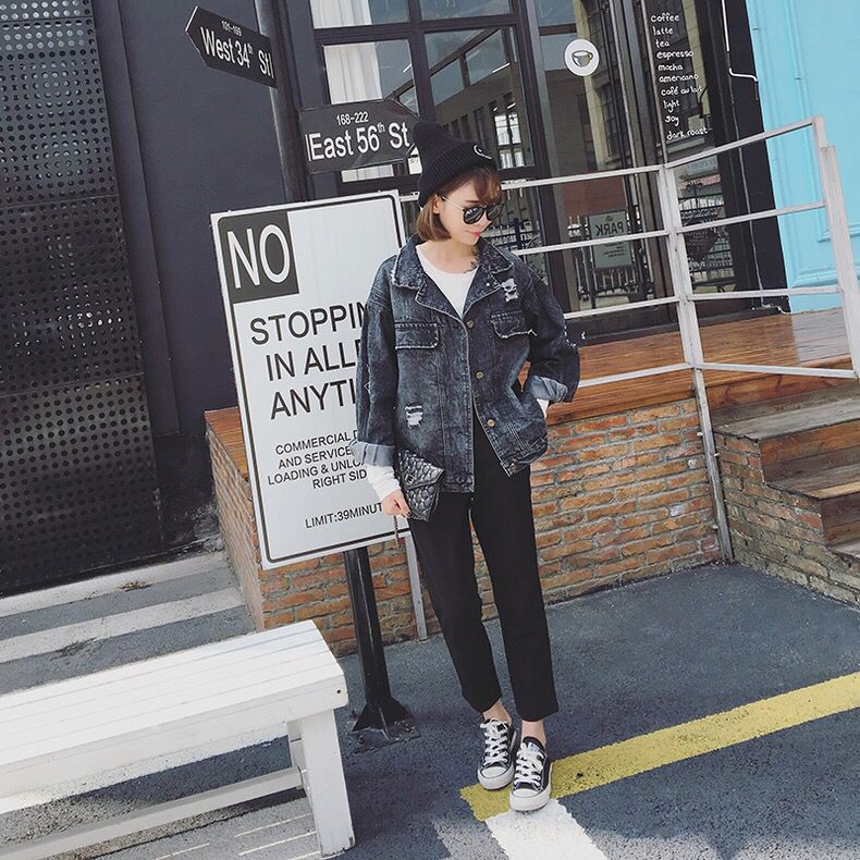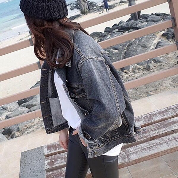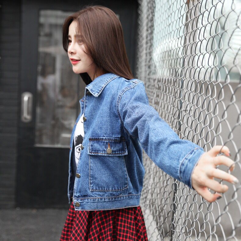 这款牛仔外套的版型也是比较短小的,衣身上还做了一些磨损以及加了一些猫爪元素,更加的时尚了,两侧的扣实用简约,上身非常的大方优雅。