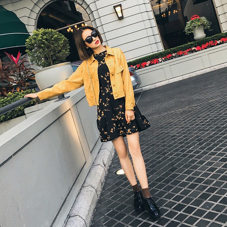 黄色给人非常温暖的感觉,宽松的版型上身非常的好看,棒球式的领子尽显帅气,黄色的金属纽扣质感很强,增加了衣服整体的品质感。