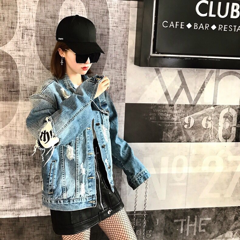 这款外套最吸引人的地方要输一侧口袋上的装饰了,徽章十分的可爱,有让人眼前一亮的效果,同时衣服上也加了一些破洞,十分的时髦。