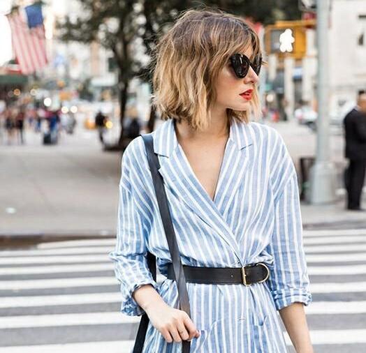 2. 当然,对于骨架大的女孩不是全身都穿得松松垮垮的就能够显瘦了,收腰也是很关键的一步,最简单的做法就是在腰部系一个腰带,这一步也是为了近一步弱化我们的大骨架感,凸出腰部线条。