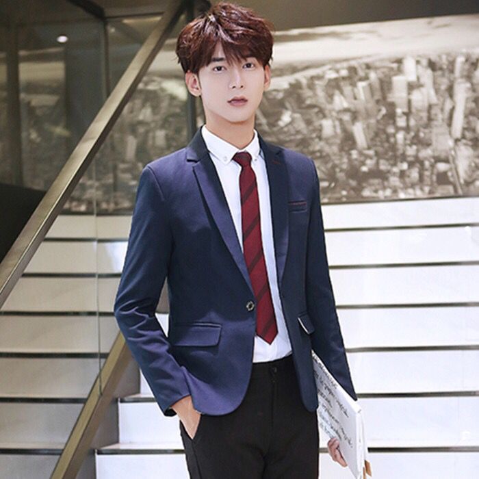一款穿上了就舍不得脱掉的西装~简约大气的领口设计让你看上去更具优雅绅士范儿,很像韩剧里的欧巴穿西装的感觉哦,一股精英气息扑面而来,看上去就很帅气呢,精致的袖口搭配高档纽扣设计,更是让你举手投足都散发迷人魅力!