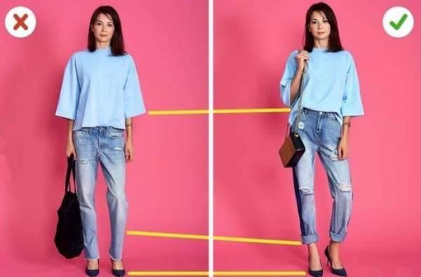 年轻的女生都不太习惯穿高腰的裤子,因为会比较闷。然而低腰裤会让女生看起来非常显矮!然而如果你是选择了一条牛仔长裤,你只需要将裤管稍微卷起,再搭配一双合适的高跟鞋以及短款上衣,就能在视觉上立马增高五公分。