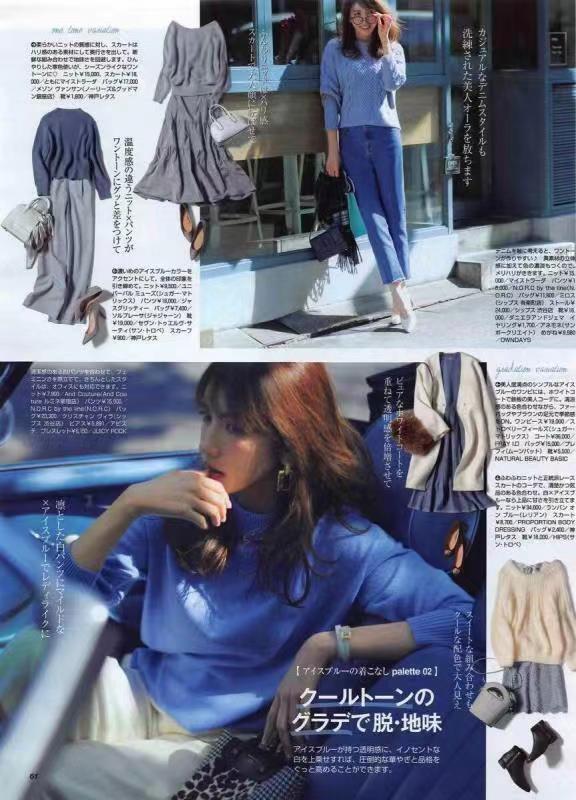 蓝色的穿搭使你看上去更有活力,并且能够让整个人看起来格外的清新。这样的清新风格是能够起到很好的减龄作用的,并且会显得肤色更加白皙,能够更好的衬托出肤色显气质。所以,蓝色系穿搭很适合女性们穿着。