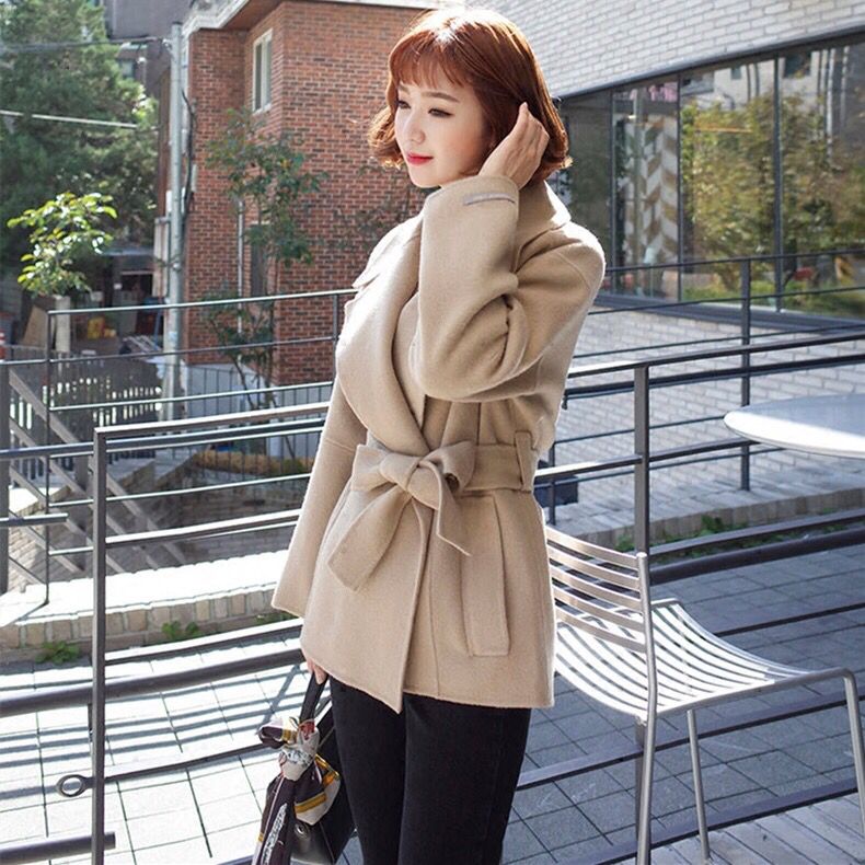 虽然是短款大衣,但是穿在妹子身上却犹有几分小香风的味道,很适合小个子女生,另外采用皮质地的收腰系带,也能让妹子的形象更上档次一些。