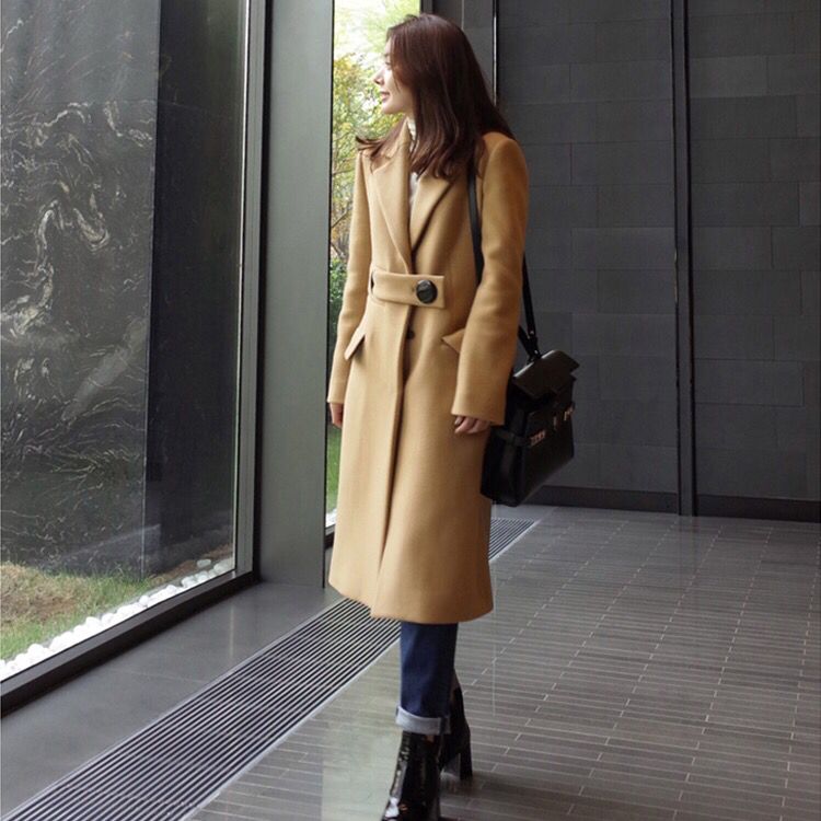 长款带西装领设计的大衣,在样式上更显正式感,连带着即使是修身系列,衬托出的曼妙身姿也染上了一层强势女性的味道。