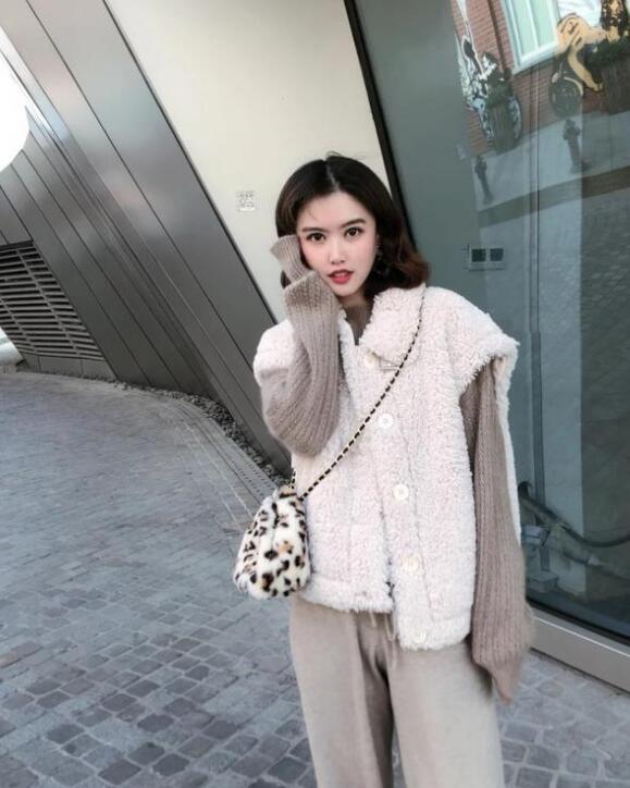 至于这款羊羔毛款的马甲就更不用说了,羊羔毛外套火了之后,自然带着羊羔毛马甲也大火了起来。这款马甲穿上之后给人以软软萌萌,特别可爱的感觉。