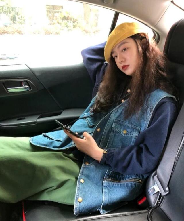 牛仔马甲也是比较受欢迎的,而且同一款牛仔马甲可以穿出不同的风格,搭配暖色的连衣裙,你就是个温柔妹子,搭配冷色调内搭加灰色牛仔裤,你就可以变成一个酷妹子。