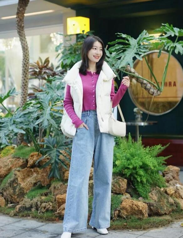 学生党们尤其是高中生和大学生们,就比较喜欢这种款式的马甲了。同样的,这款马甲也是冬季面包服的改造版,妹子们很喜欢像面包服这种的上衣,非常宽松,穿上去慵慵懒懒,非常舒适。而且越素的颜色,效果越好。颜色比较素的面包服可以选取比较亮的衣服作为内搭,它会悄咪咪地为你的穿搭增加亮点。