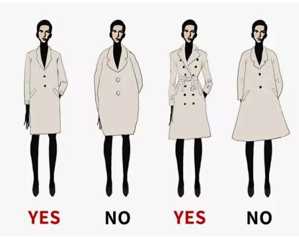 市面上各式各样颜色各式各样版型的大衣供我们选择,你以为穿到身上都一样吗?大错特错。如下图,大衣应该选择腰部较细的,可以达到收腰的效果。你所认为的休闲宽松只会是你整体松松垮垮虎背熊腰。