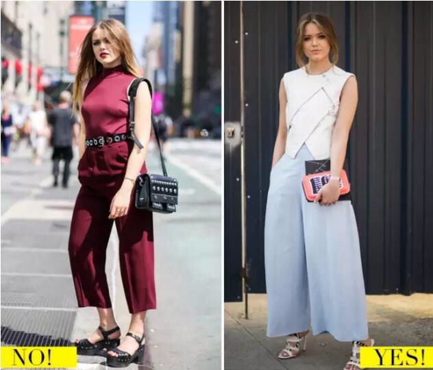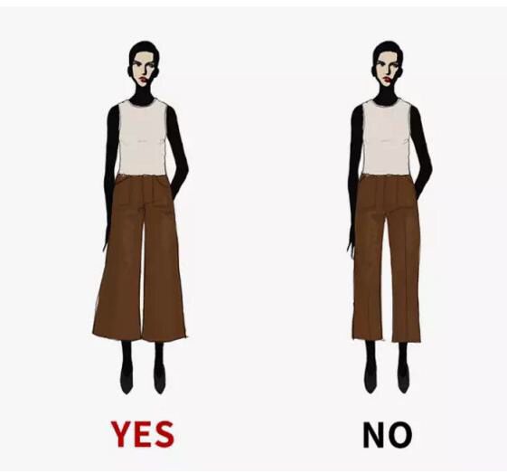 如图,左边与右边相比从视觉上脚踝更加纤细有没有,整体更加修长又没有。这就是阔腿裤流行的道理啊。
