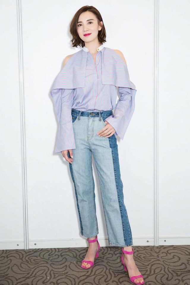 设计中包含撞色、拼色元素的直筒裤,充满了时尚艺术气息,独特的设计无论你怎么搭配都能够穿出都市时尚摩登风。拼色撞色效果还可以达到瘦腿的作用,譬如黑白撞色的直筒裤,视觉效果看上去你的腿至少瘦了一半,且黑白经典配色,百搭又时尚。私搭品味极好的小宋佳,在出席某时尚活动时就巧妙的选择了拼色效果的直筒牛仔裤,内侧浅蓝色外侧深蓝色,再加之做旧的水洗效果,时尚复古风呼之欲出,视觉上又可以显得腿又细又直,玫红色高跟鞋与裤子的颜色达到撞色效果,增加整套穿搭的时尚感。这个小心机值得借鉴哦!
