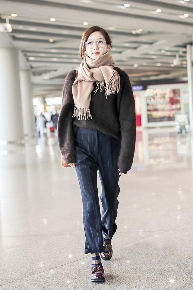 纯色系的阔腿裤,除了黑色、深蓝色、棕色等深色系的以外,也可大胆选择浅色系的阔腿裤。白色、米白色的阔腿裤搭配焦糖色、卡其色、淡黄色毛衣或呢大衣,女性的柔美被展现的淋漓尽致,此处建议鞋子颜色挑选与上衣同色系的,能够让你这一套穿搭的时尚度提升许多。看,赵薇就选择了一整套白色的阔腿裤穿搭,她身上所穿的阔腿裤材质是垂性较好的面料,搭配白色小西装,脚踩白色高跟鞋,职场女王的气场喷涌而出。职场女性可借鉴这套穿搭,简洁干练时尚又不失个性,是一个绝佳的搭配参考。
