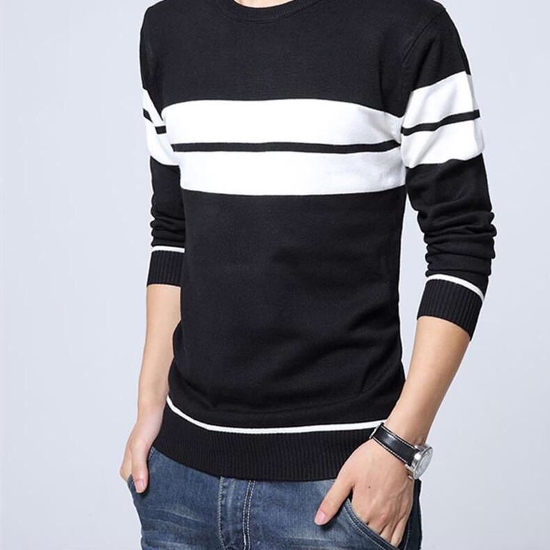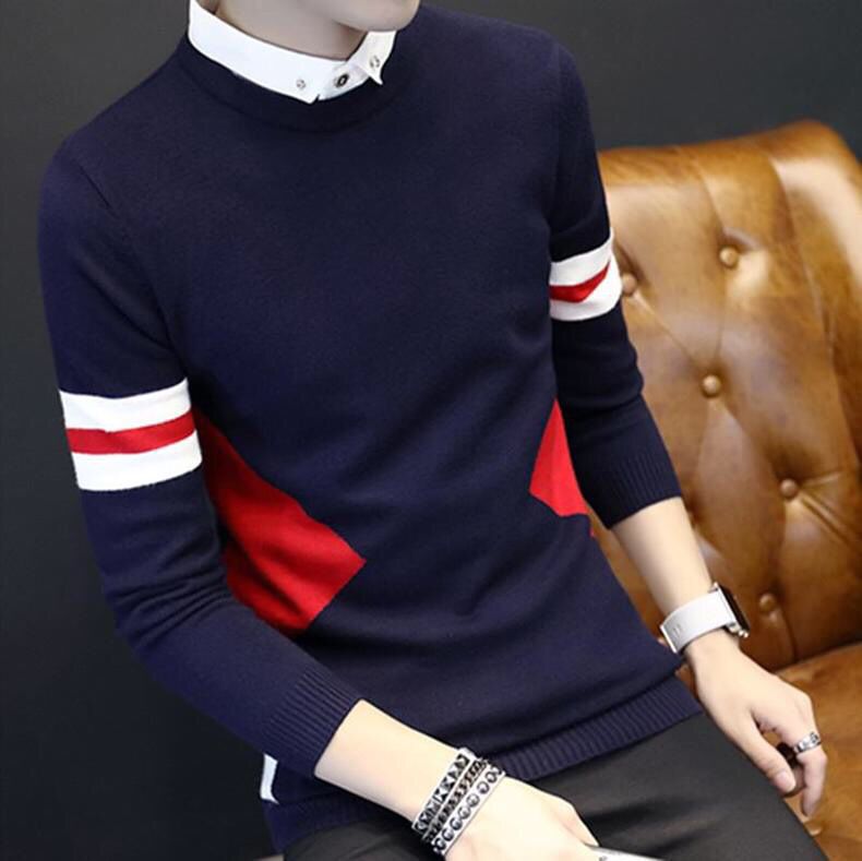 很有青春活力的一款针织圆领套头衫,从上到下颜色层层过渡,看起来很不错,里边儿搭配衬衣,露出领子,青春又时尚。