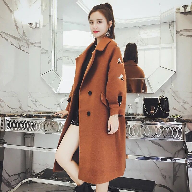 灯笼袖的大衣穿起来不仅能综合大衣本身的严肃感,还能穿出显瘦又甜美的感觉。而衣服是中长跨的设计,穿起来显瘦效果特别好,衣袖上的小蜜蜂刺绣让衣服充满档次感跟甜美感,随意搭配都能显瘦又好看。