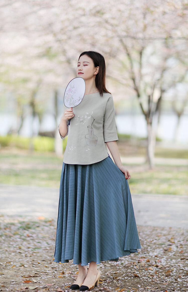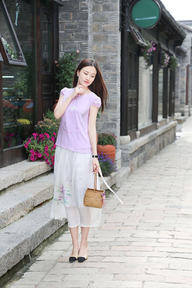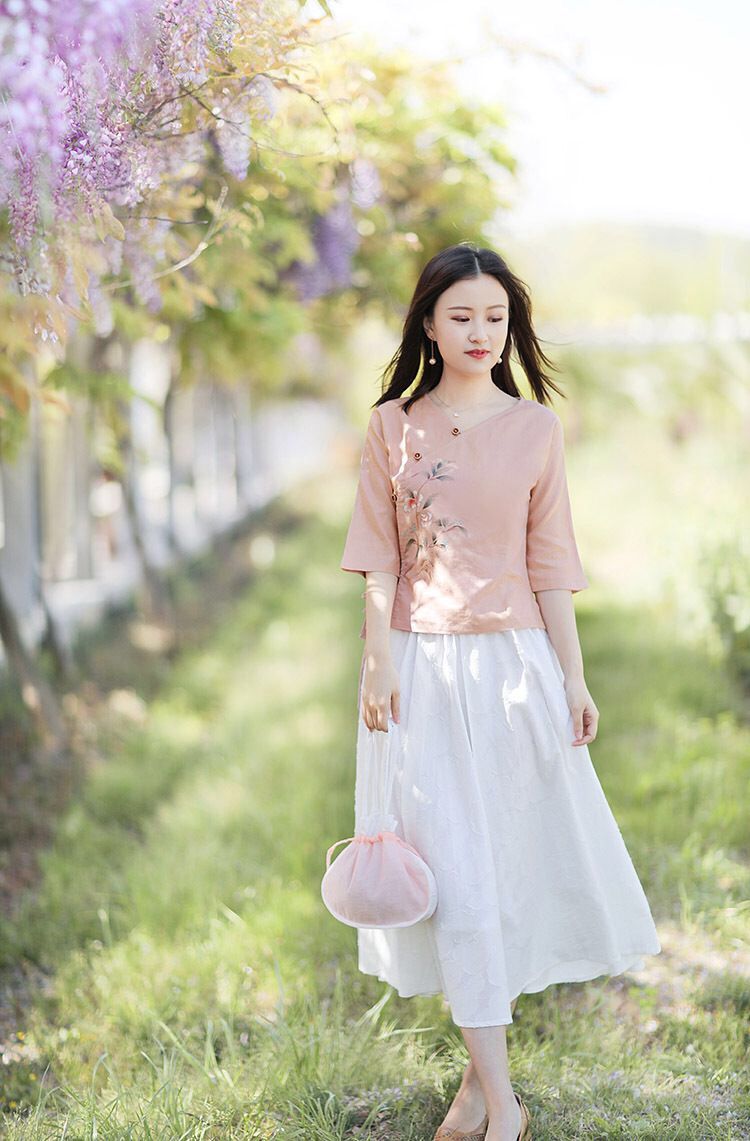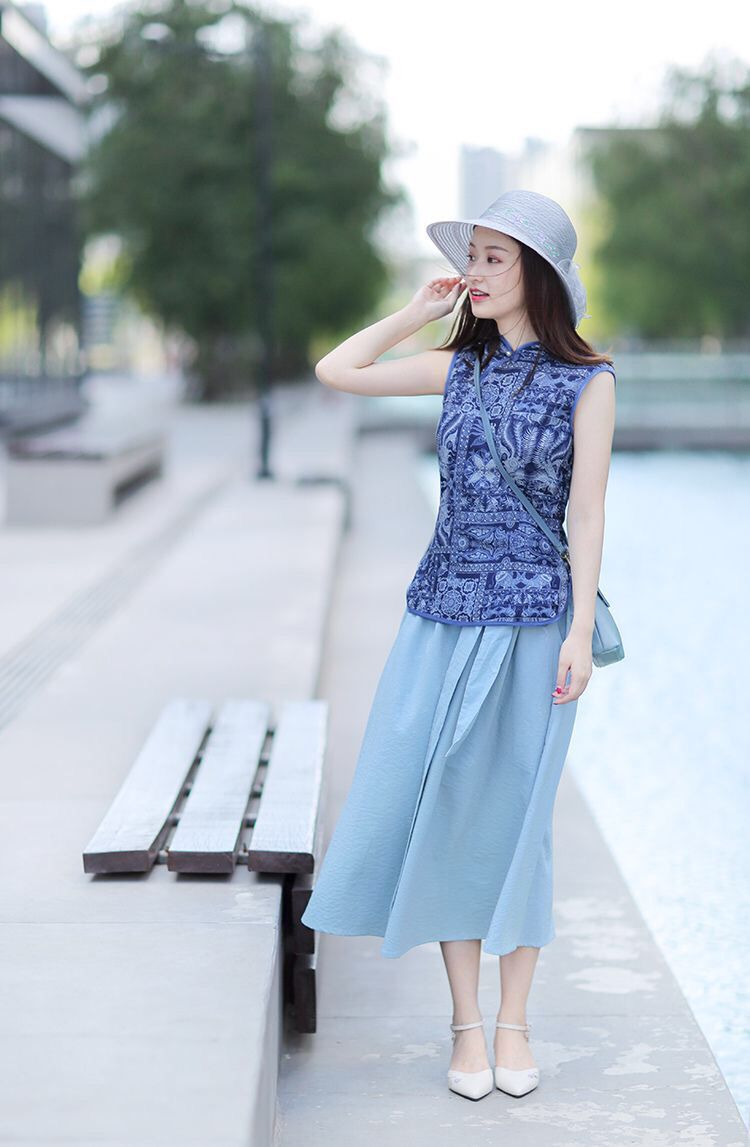 炎炎夏日已经过去一半,现在最是燥热的时候,出门前都很纠结要怎么穿?中国风的上衣搭配半裙,简约的中式风