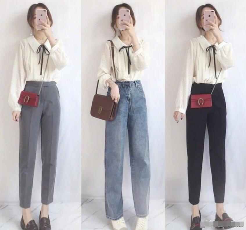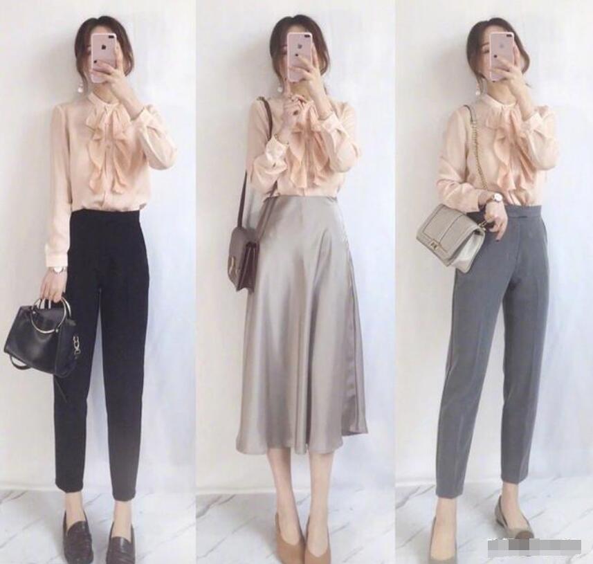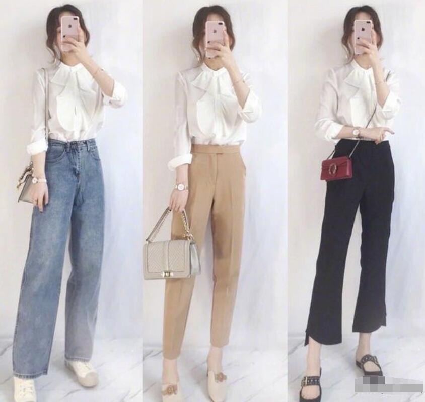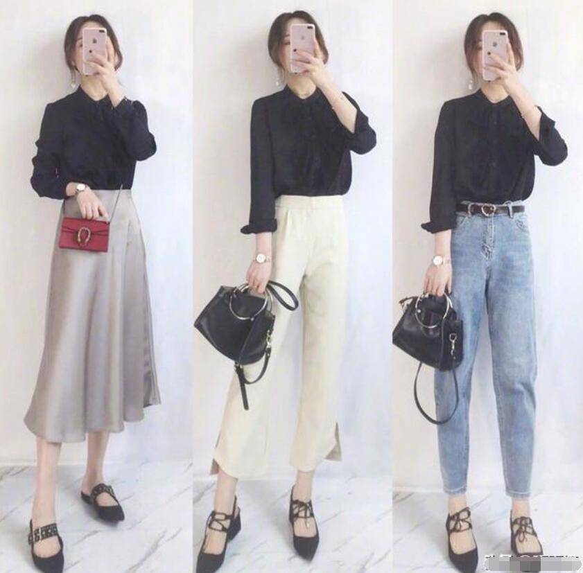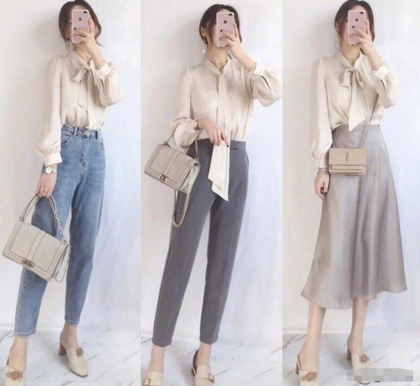 领结款衬衫应该是中层职场女性的最爱,它不仅可以利用领结凹出多种造型,上身之后还给人一种很有气场的感觉,至少在穿搭上也会显得人非常的精致大方。配上小心机的珍珠耳饰,完全就是富婆本人。如果不想如果风格不想要这么的成熟,可以选一些减龄款的单品,牛仔裤就是一个很好的选择,上身之后也不会显得非常违和,反而有一种休闲轻松愉悦的大佬感。而在相对正式的场合则可以选择温柔的裙子,这套非常大方得体,很适合那些身上有肉肉的妹子。
