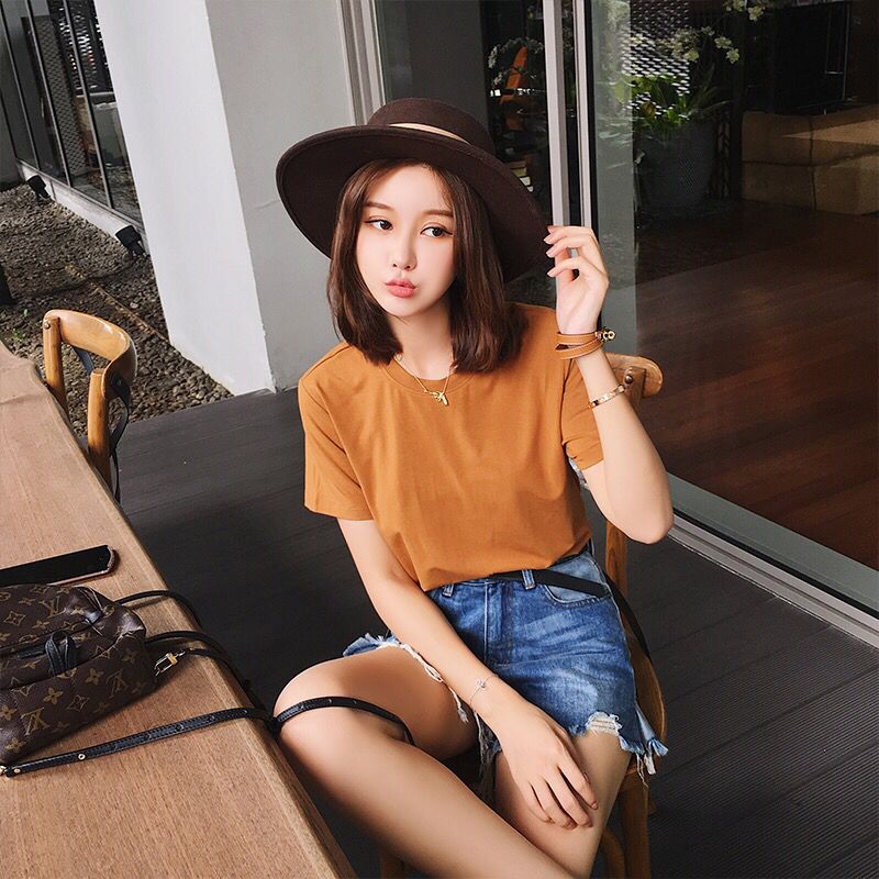 纯棉圆领T恤。 简约纯色风的T恤,整体偏向森系风的感觉非常漂亮。如果这个夏天想把自己塑造成美丽时尚的天然风美女,这款圆领T恤一定不能少。它可以让你的气质瞬间提升好多哟,觉得过于简约了点,可以配上手链或者项链。