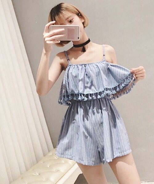 夏天的连体裤跟荷叶边更配哦,上身凉爽的舒适度是,满分,迷人锁骨小香肩都是毫无保留的,下半身的阔腿的裤型也能遮盖臀部宽一点的宝宝,真是不要太贴心!