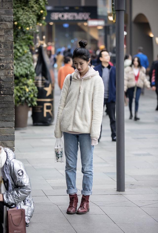 挽裤脚能在一定程度上满足我们对裤子偏长的的应对,尤其是像这样的直筒裤,在裤脚的位置一点一点挽起来。整体视觉没有打破原本裤子的版型,还是非常时髦显瘦的。不过时间久了大街上都是这样挽裤脚的人群,也难免觉得单调。