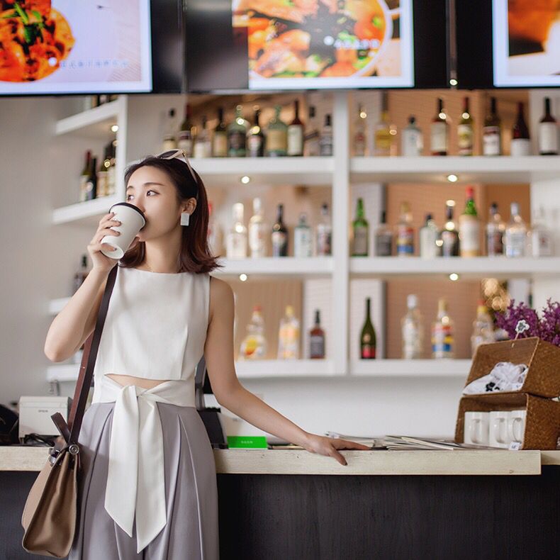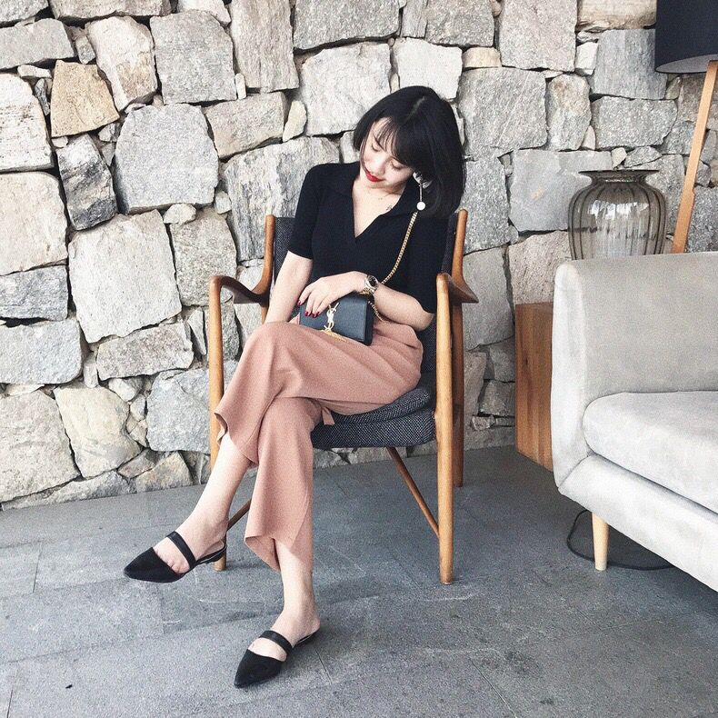 短款一点的上衣搭配高腰的阔腿裤正好是凸显好身材的方法,显露出中间一截的肌肤,不但性感一把还可以帮助拉长全身的比例哦。