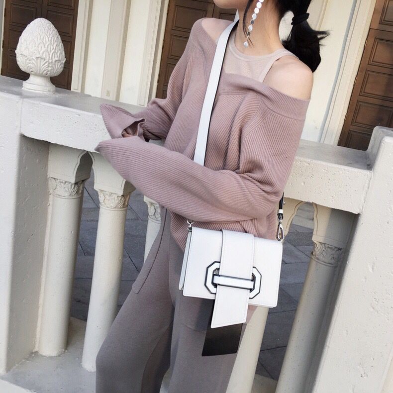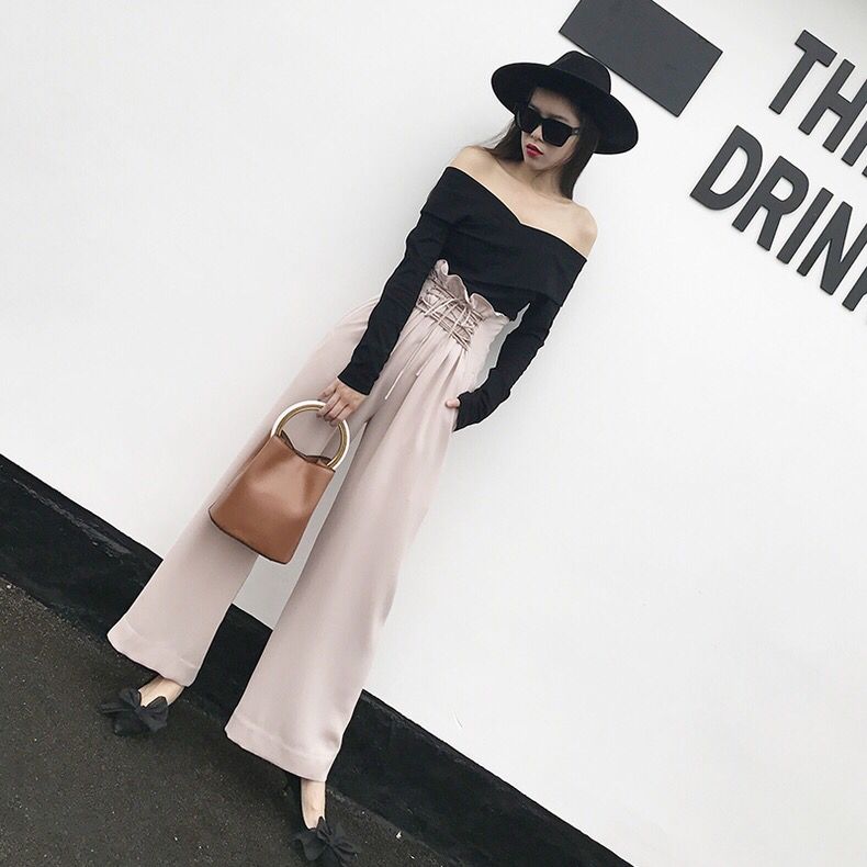 露肩的款式也是今年很流行的款式,接下来的天气是越来越暖,露肩洋气阔腿裤遮肉,两者结合时髦洋气,搭配高跟鞋小女人味十足。