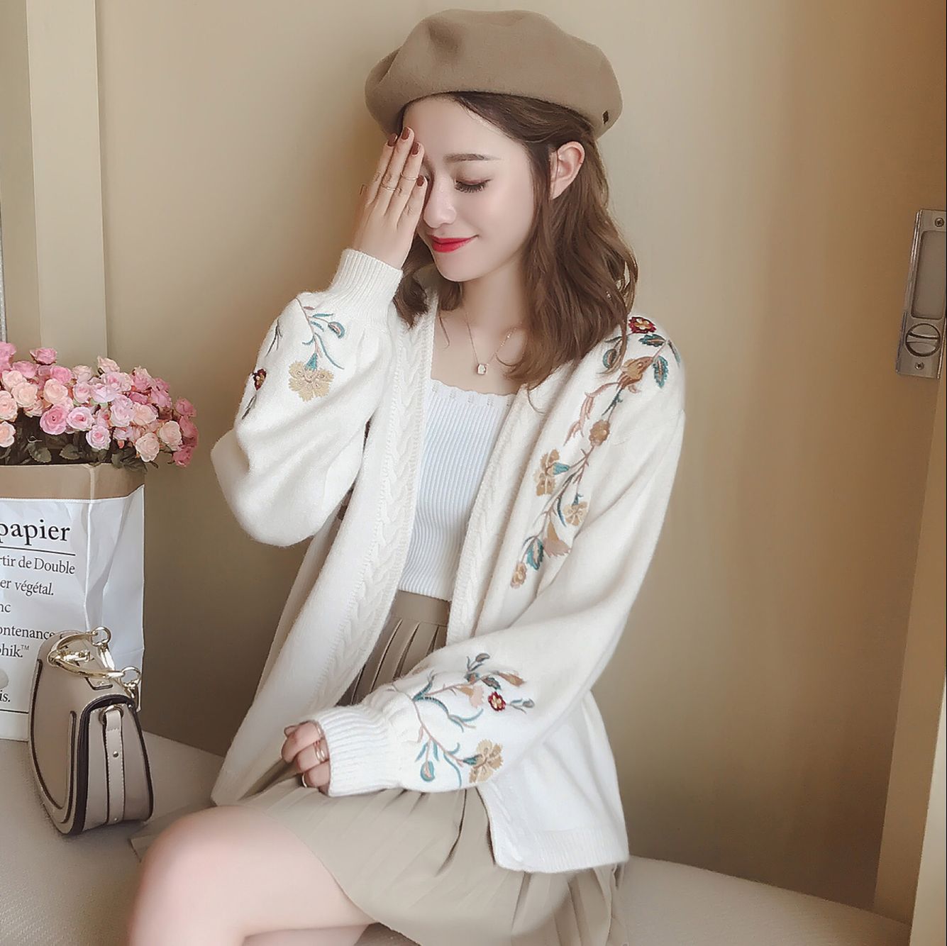 这次上新我喜欢的一套,推荐你们一人手自留一件,真的太好穿太洋气啦。这次的黑色是我重点推荐你们的颜色,黑色特别显瘦而且不挑人不挑肤色,日常或者工作都可以驾驭的住。刺绣绣花的套装我很少出,这次碰到喜欢的就上架给你们啦,我自己是两个颜色都留着穿啦,因为太难碰到这种款式的衣服啦,有喜欢的就要入手啦。