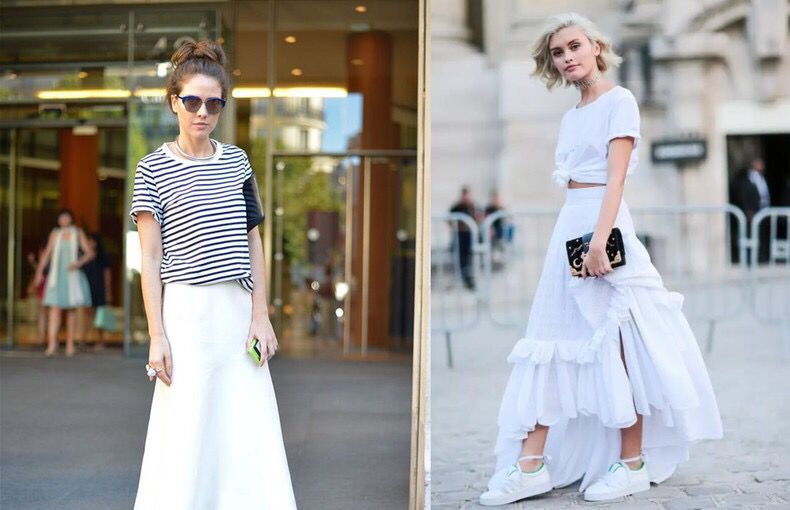是不是太普通?这是因为你只认为它休闲,没有注意到它女人味的一面。比如T恤搭裙子的时候。掌握下面这几点,你就能穿的很好看: