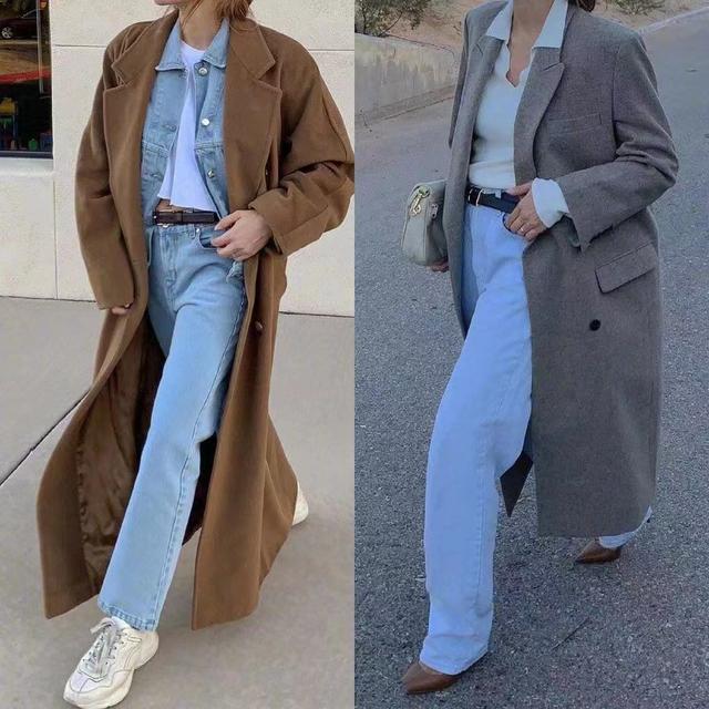 短款的露脐T恤,俏皮又时尚,搭配浅色牛仔衣,给人一种清新干净的感觉。同样搭配浅色牛仔裤,牛仔的搭配时尚又帅气,外穿一件焦糖色大翻领大衣,叠穿出休闲时尚的层次感。针织V领内搭,既有V领设计又有翻领设计,时髦又性感,搭配一条宽松的浅色长款牛仔裤,显高也显瘦,外穿一件灰色长款大衣,既中性帅气又不失性感。