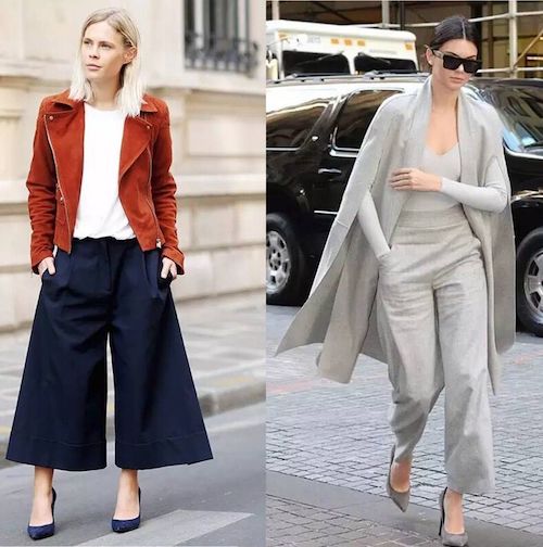 高腰加九分才是最显长腿的搭配,但是你要是喜欢夸张的也可以尝试一下高腰的长款阔腿裤,可能你会有一点点难驾驭,如果你身材完美的话当然OK。