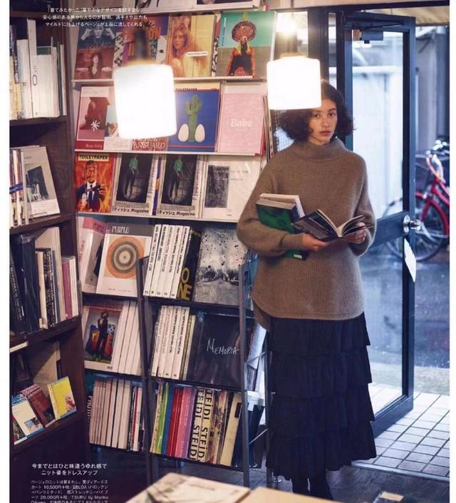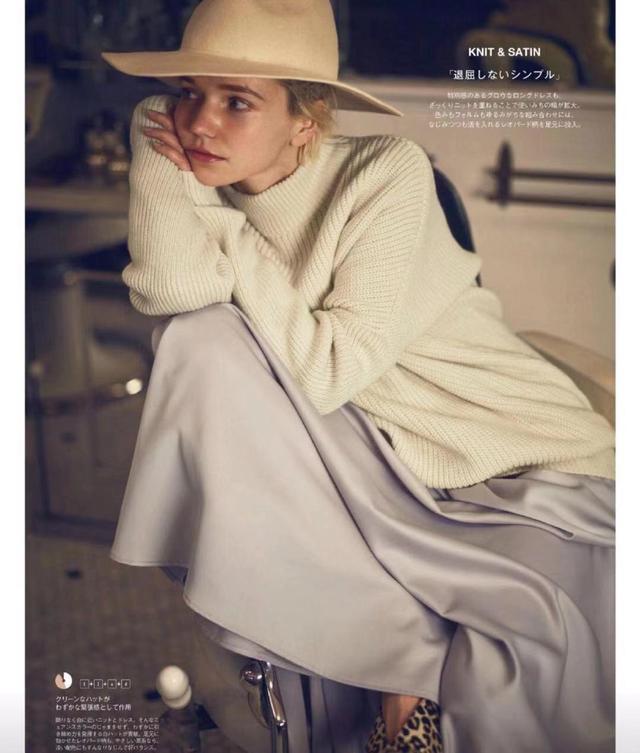丝绸面料的灰色伞裙,再带着一种优雅与高级风感觉,微风吹起面料会有微微的灵动感,非常的显气质。搭配一件米色偏白的高领毛衣,在冬季非常的温暖,给人一种优雅纯洁的感觉,简约又不失气质打造出一种温柔的淑女风。