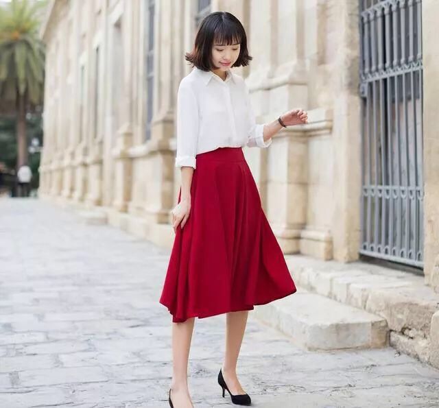 高腰裙最适合小个子女生,想不想要胸以下全都是长腿的感觉?高腰的裙子可以很好提升下半身的比例,视觉上显高显瘦,上身很显气质,再搭配一双高跟鞋轻松拔高20cm。