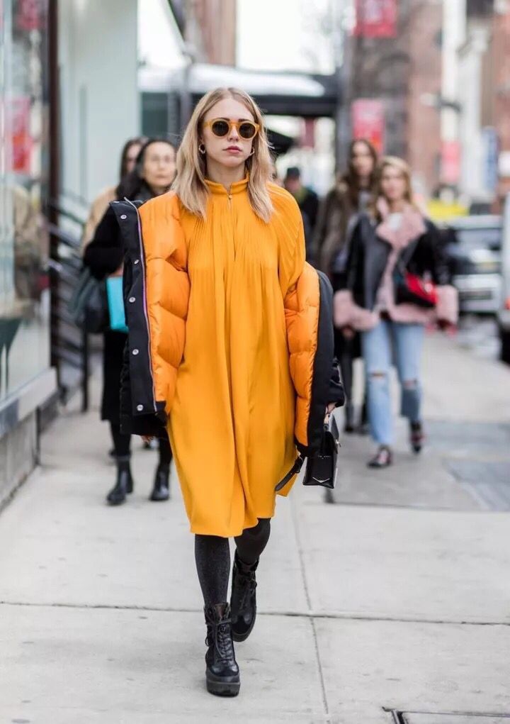长款羽绒服敞开穿着,丝毫不会影响比例问题,也能满足一定的保暖需求,只需要用手护着,或者加上一条大大的围巾,温暖和气场就全有了~