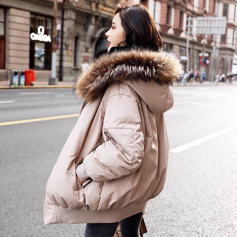 推荐理由:一侧袖子口袋装饰效果,搭配小圆环的拉链设计,兼具时髦和帅气,螺纹袖口设计,简约不拖沓,貉子毛领浓密柔滑,蓬松丰盈,给你最温柔的触感~