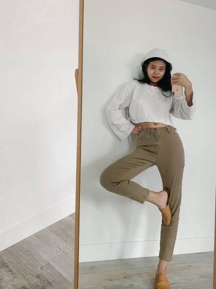 九分裤和长袖短上衣的搭配也很日常,大地色的配色可能过于单调,桔黄色无后跟皮鞋和白色渔夫帽,在简约森女和元气少女的转换间来去自如,大面积低饱和度的纯色搭配少而精致的亮眼时装,舒适优雅不乏高级的穿搭方式,淑女姐妹一定不要错过。