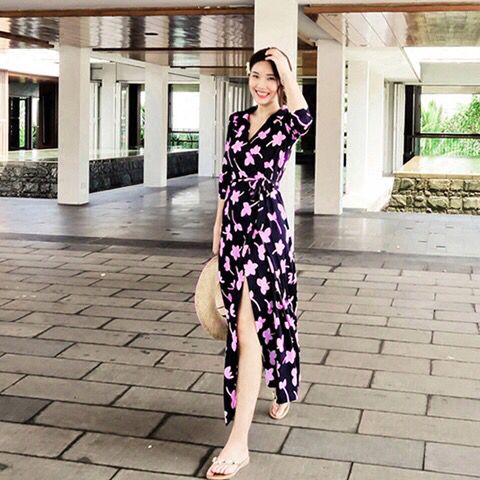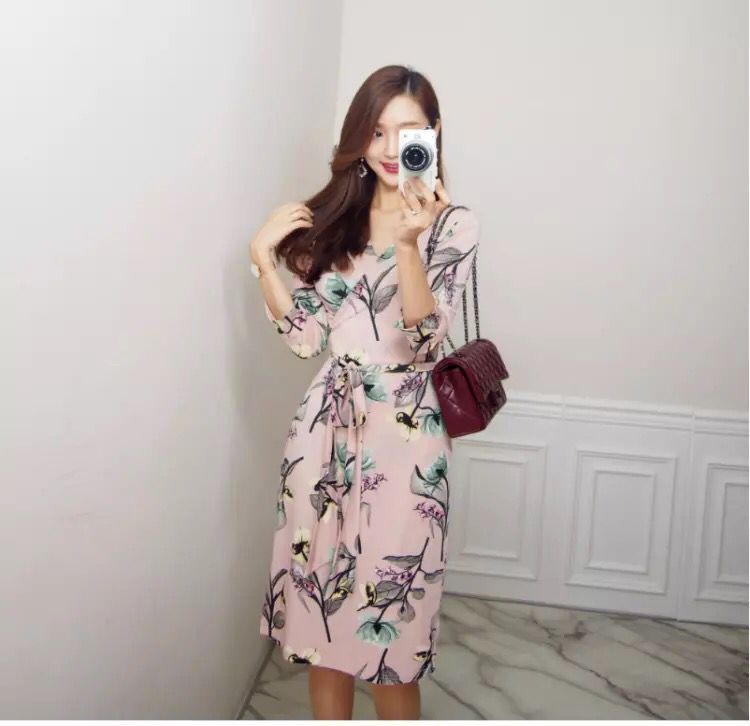 非常好看的裹身裙,粉嫩的刚刚好,上身效果惊人好看; 这款印花很有气质,非常吸引眼球。适合任意身材的女生, 非常修饰女性身材,修身、显瘦,裹身裙天生开叉, 所以略带小女人的性感 。