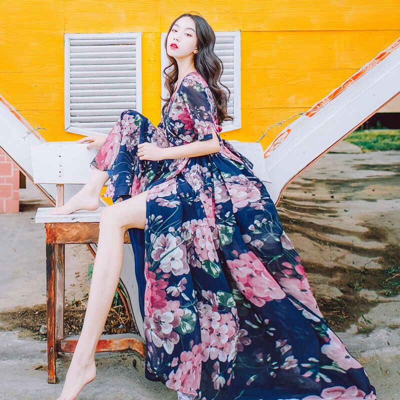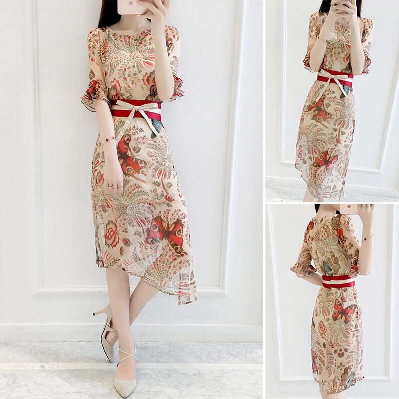 迷人气质的裹身裙,适合任意身材的女生包括孕妇!修身显瘦,略带小女人的性感, 面料舒适雪纺印花时尚大气,名媛范儿十足的时尚七分袖连衣裙~