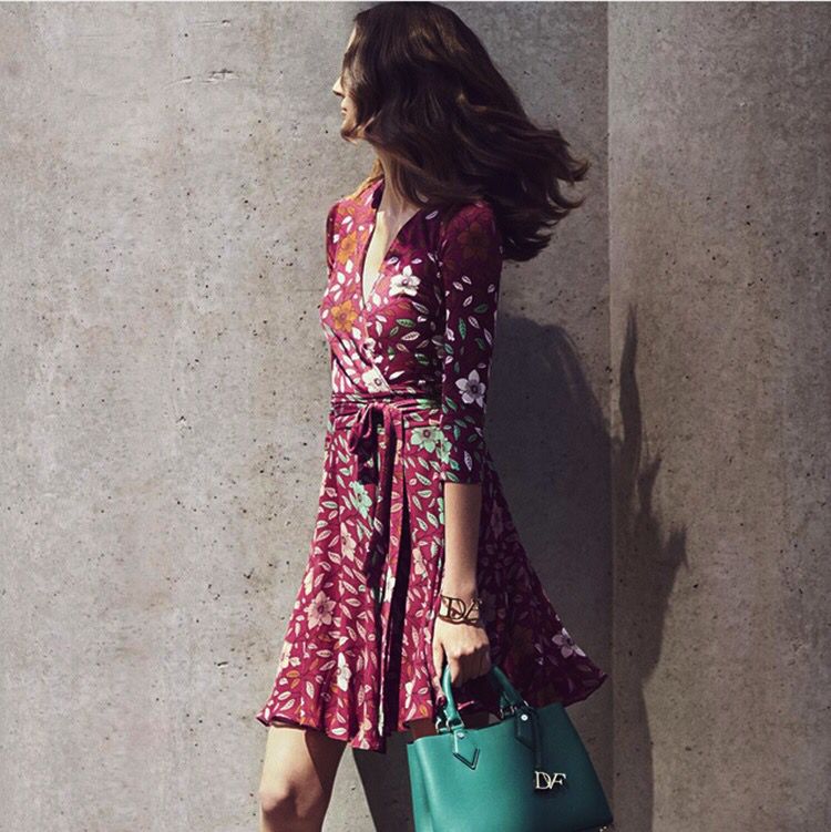 又是一款经典的裹身裙,粉紫色枫叶印花相当美!妹纸们一定要收一件的啊!很显瘦的款式,看到一个国外时尚杂志对裹身裙的评价:经典,时尚,减身上5磅肉!