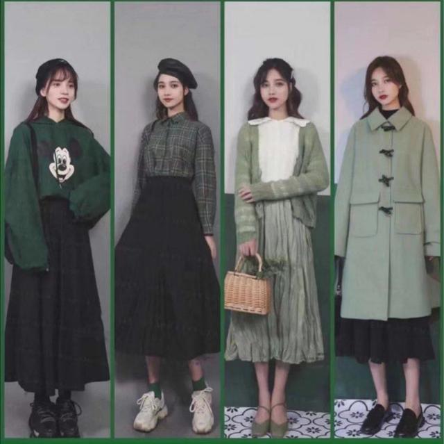 绿色是让人心情很好的颜色,而这种颜色作为卫衣或者是短款的毛衣外套,都是青春洋溢的,可以选择一条褶皱的半身裙来进行搭配颜色,根据上衣的款式选择。英伦风格十足的羊角扣外套也同样有着很好的可塑性,搭配的时候底下露出一层的裙子,更温柔可人。