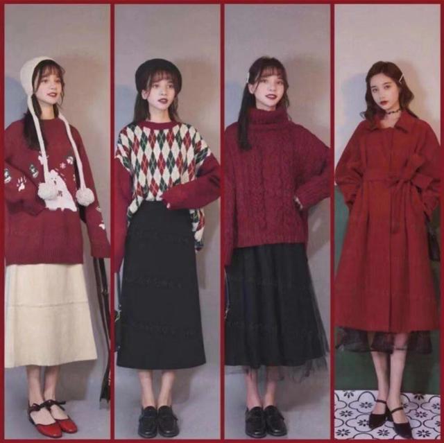 红红火火的颜色,让人感觉一下子置身圣诞乐园,红色的毛衣,有的是麻花设计,有的是图案精巧的设计,也有的是格纹的经典设计,这些都可以穿出节日的气息,搭配上杏色的裙子和黑色裙子,协调又好看。长款的毛呢外套,如果有收腰的处理,会更加有气质一些,而要想淑女一些,可以在里面搭配一条蕾丝面料的裙子。