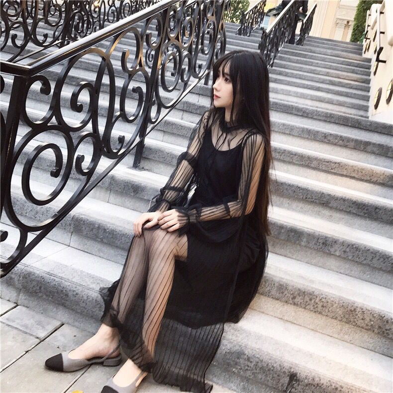 【推荐】如果你不仅腿粗胯宽,还手臂粗大,上身肥胖的话就应该选择这种深色系的裙子,因为深色是比较能遮肉和显瘦的。纱裙的布料还能给人性感的魅力。