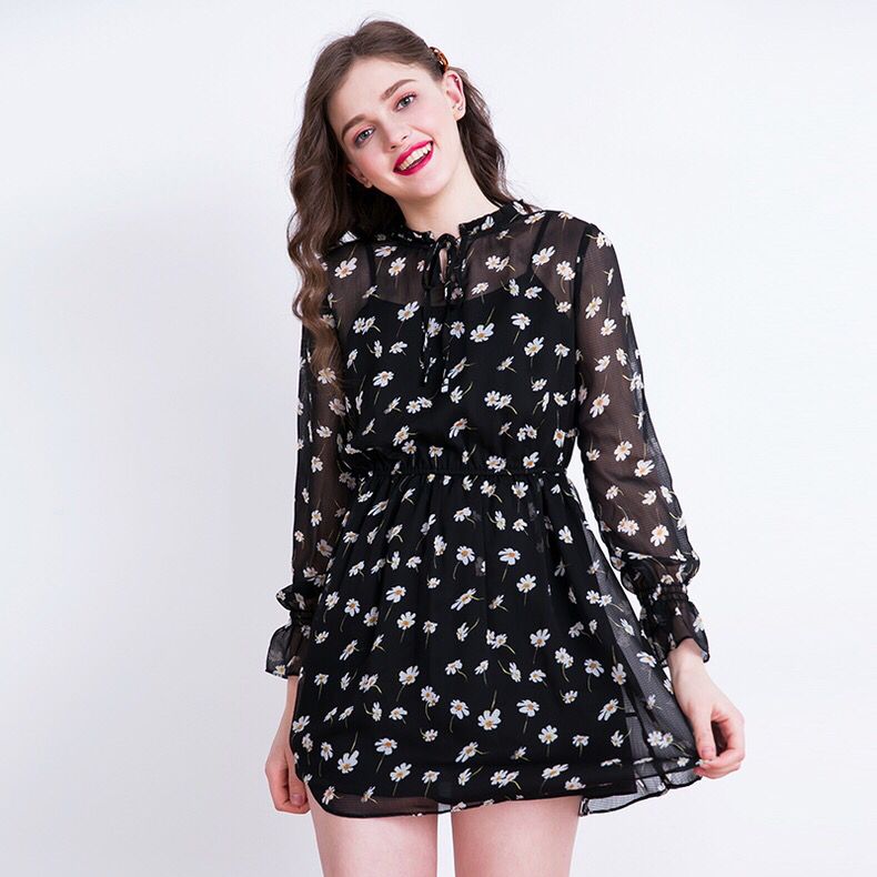 【推荐】这款小碎花裙子很小清新。上衣部分就像休闲风格的衬衫,扣子的设计很是特别。下裙部分优雅而飘逸,腿形不好看的女生都可以去尝试哦。
