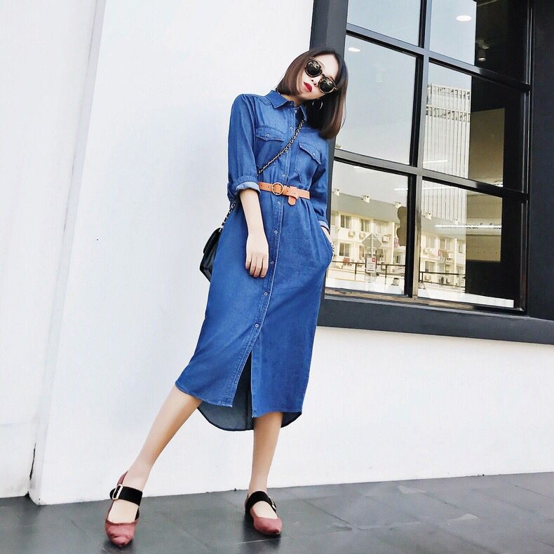 【推荐】很清新而又显气质的一款牛仔裙,穿在身上不仅很有女神范儿还特别休闲。简单的POLO领,简约又时尚。时尚轻盈的雪纺衫搭配显瘦甜美你可以选择添加腰带也可以写直筒型,都是很棒的。