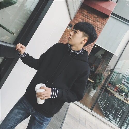 假两件的搭配,袖子跟高领的部分是黑白条纹相接的设计,整体的黑色为主色调。有种简约的帅气,它的假两件叠穿的方式也是当今时尚的构思,也越来越受大家欢迎。