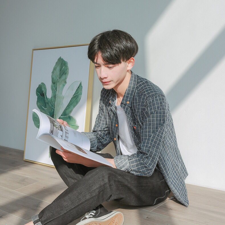 文字小清新的一款格子衫,格子衫是蓝白相间的设计。然后是会有点修身的感觉,里边没搭浅色系的衣服,把前边微微敞开不用把扣子扣上,绝对是舒适慵懒风。