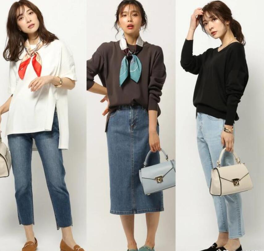 40多岁的成熟女性,如果想穿出减龄的感觉,可以在穿衣搭配中注入一些年轻元素,但不要太多,否则会显得太刻意。例如,牛仔裤在上身会穿得更年轻。选择牛仔直筒裤,搭配休闲白色T,看起来年轻时尚,然后系上红色小丝巾,展现一些空气质感。采用浅蓝色牛仔裤直裤搭配简约黑色上衣,牛仔色彩的点缀可以减少黑色带来的沉闷感,整套搭配穿起来气质和减龄感。选择牛仔裙也很不错。上身的搭配是深咖啡色,长T,配上一条绿色的小丝巾,散发出年轻的气质。