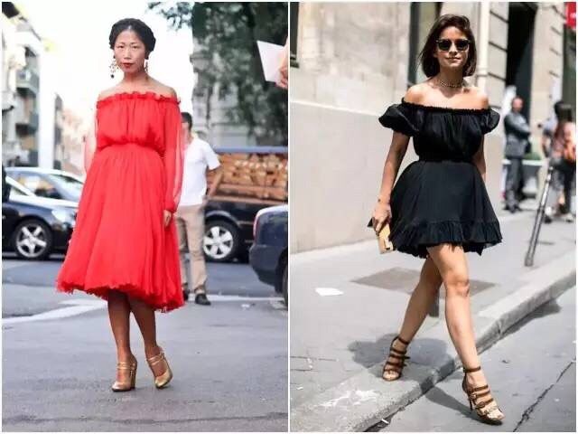 腰线始终是显瘦的最佳利器,男装搭配,在穿连衣裙的时候尤为重要。 如果你实在是喜欢图上这种很蓬松的蛋糕裙款式亦或是有一些A字裙和荷叶边的设计,就请你记得一定要强调腰线。