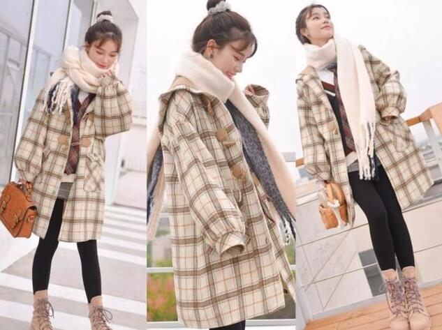 减龄又具有减龄效果的连帽卫衣,这款是格子元素的设计,或许是春季里最慵懒风的一款复古元素了,我们不难发现格子元素的给人带来的高级感,搭配黑色休闲裤,裤子是收紧口的设计,轻松穿出减龄的视觉感。